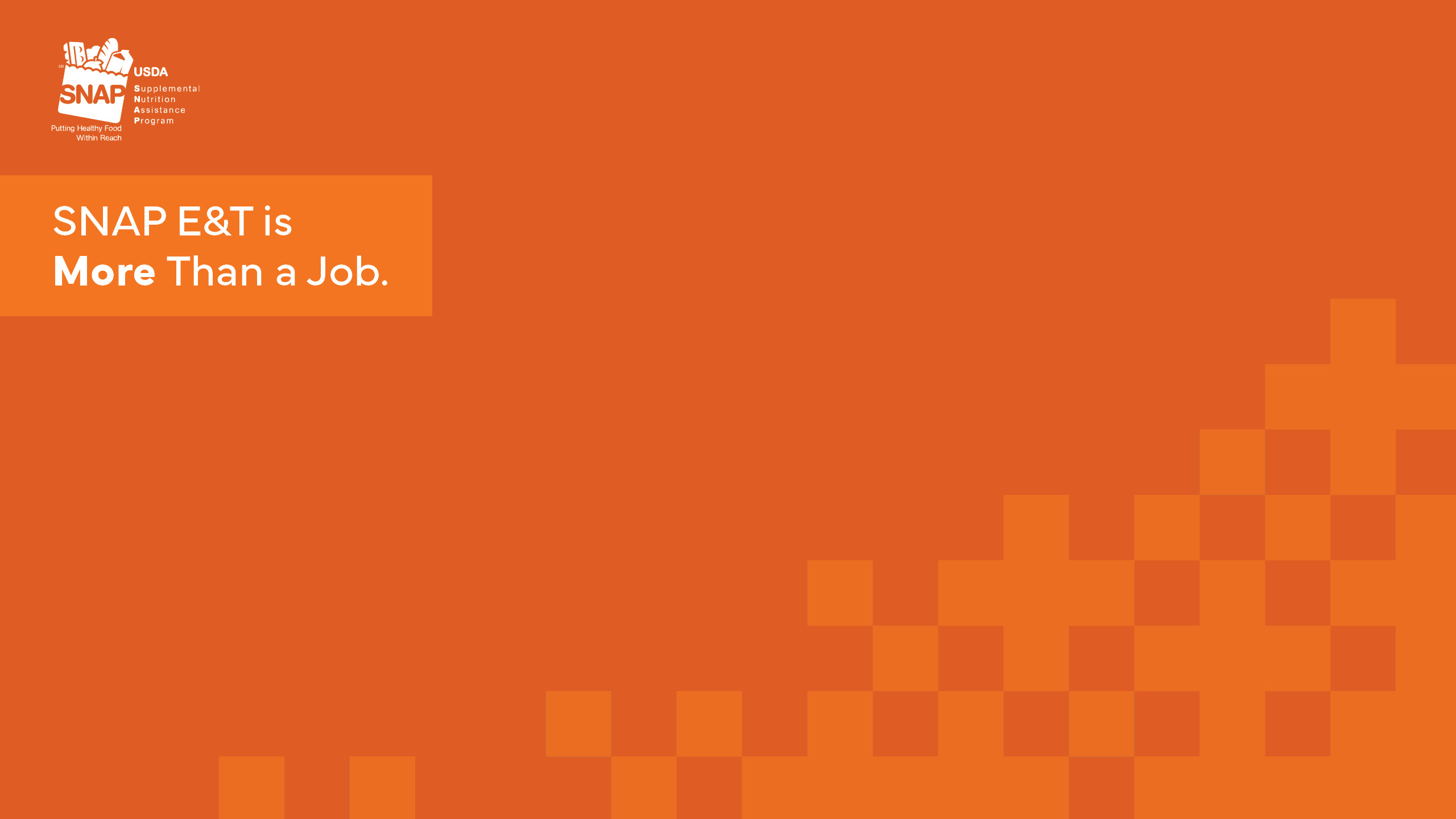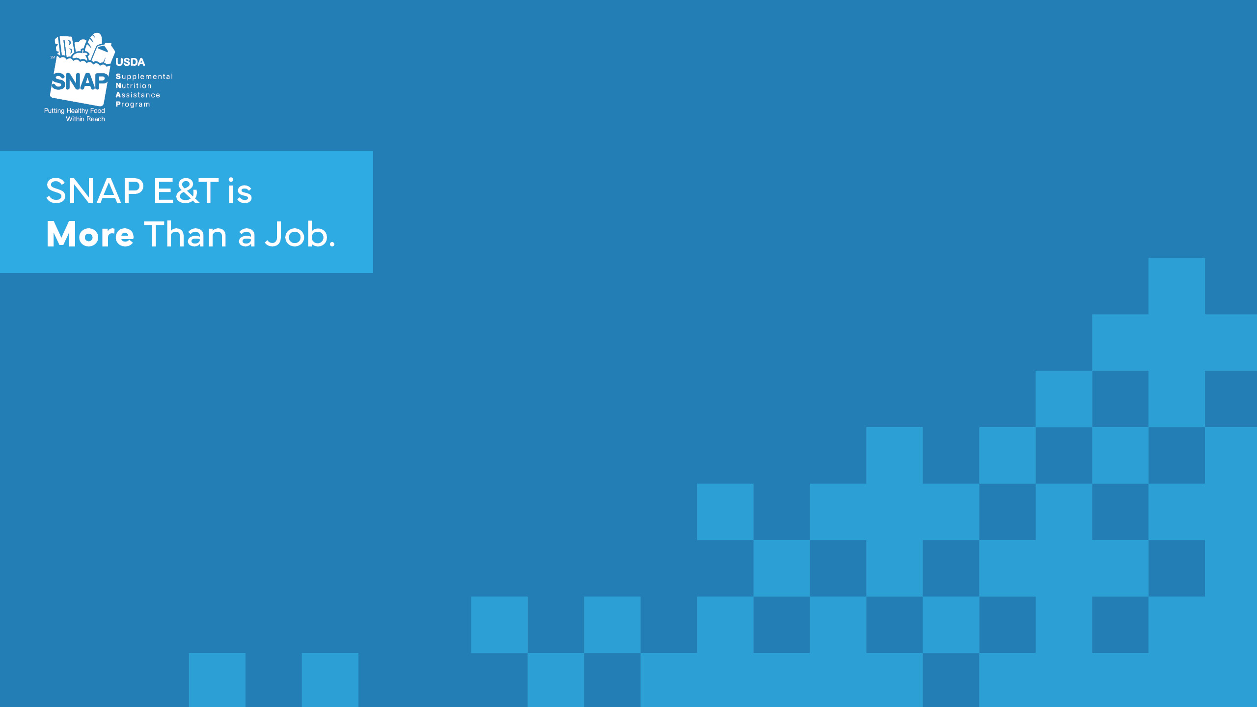 MORE THAN A JOB campaign materials are free for state SNAP agencies to use and available for download. Some materials are print-ready for distribution and others are templates that can be customized to describe the benefits for individual state SNAP E&T programs.