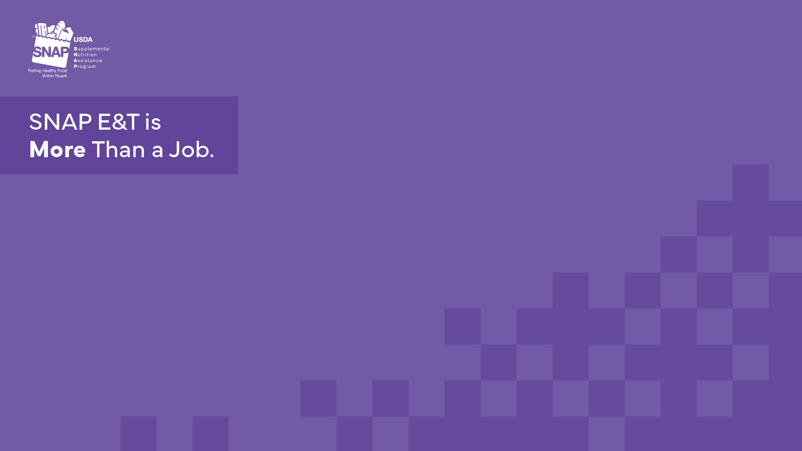 Up your SNAP E&T program’s social media game with MORE THAN A JOB branded videos. These short videos are designed to be used as an outreach tool on social media platforms.